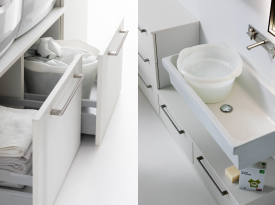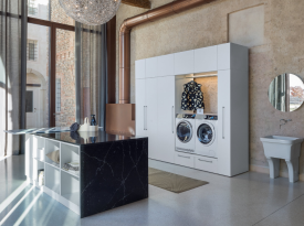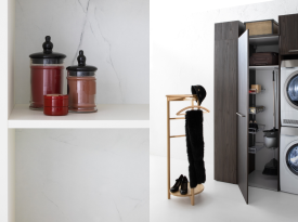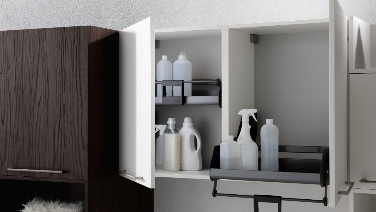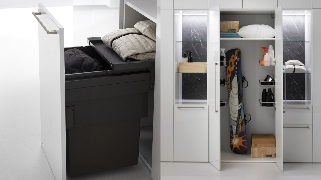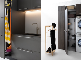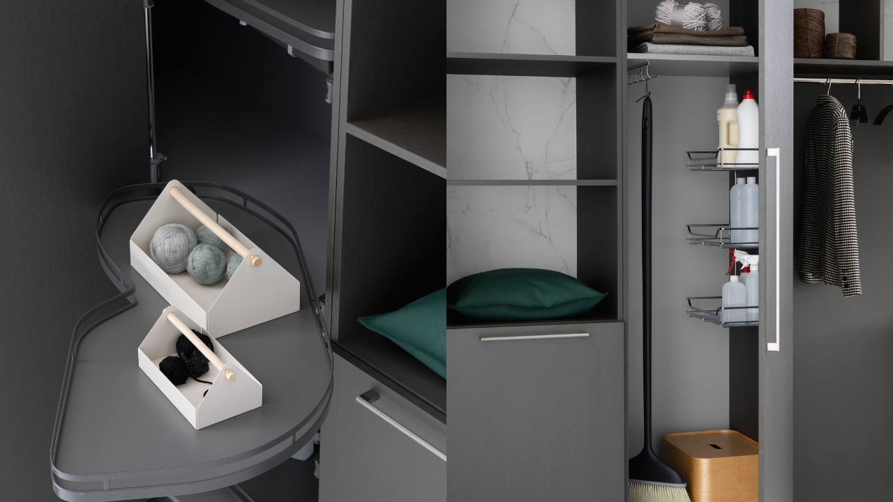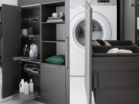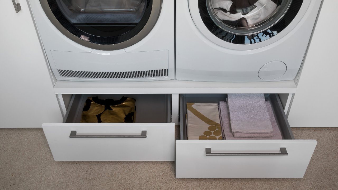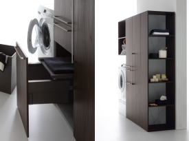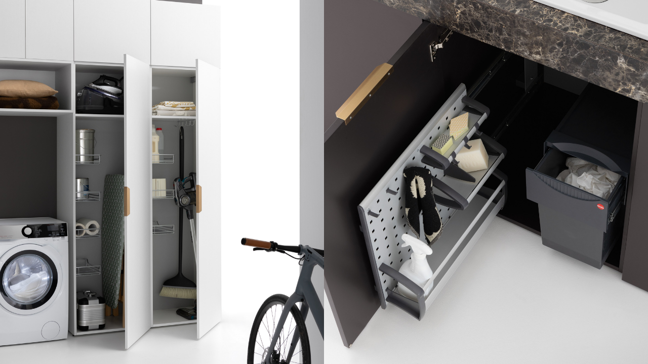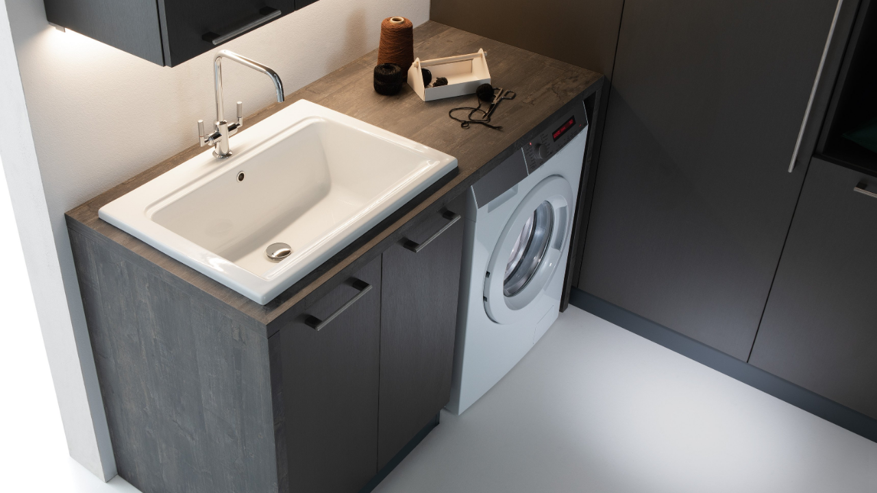 Spazi funzionali e linee essenziali trasformano la lavanderia in un ambiente ordinato e piacevole.
