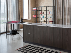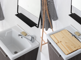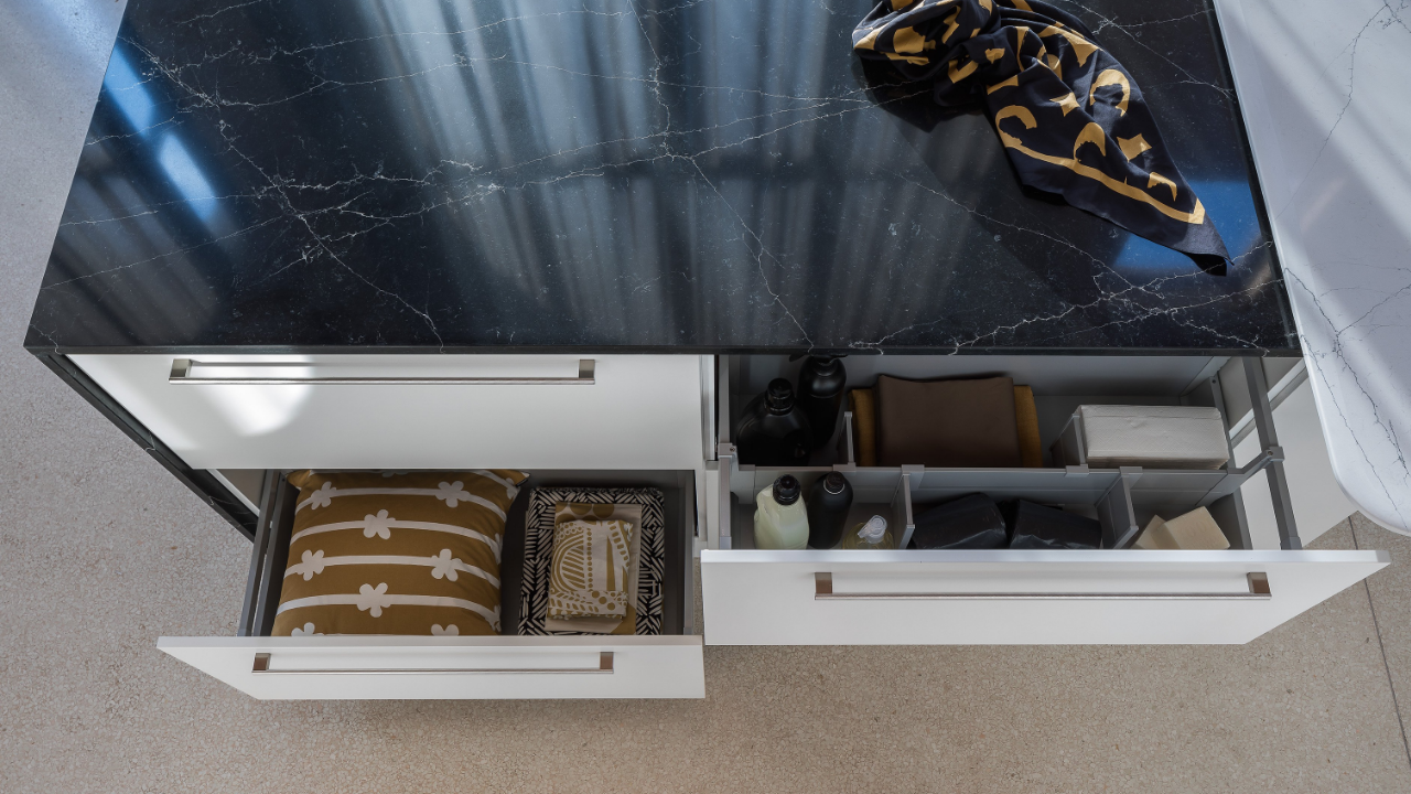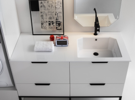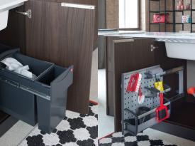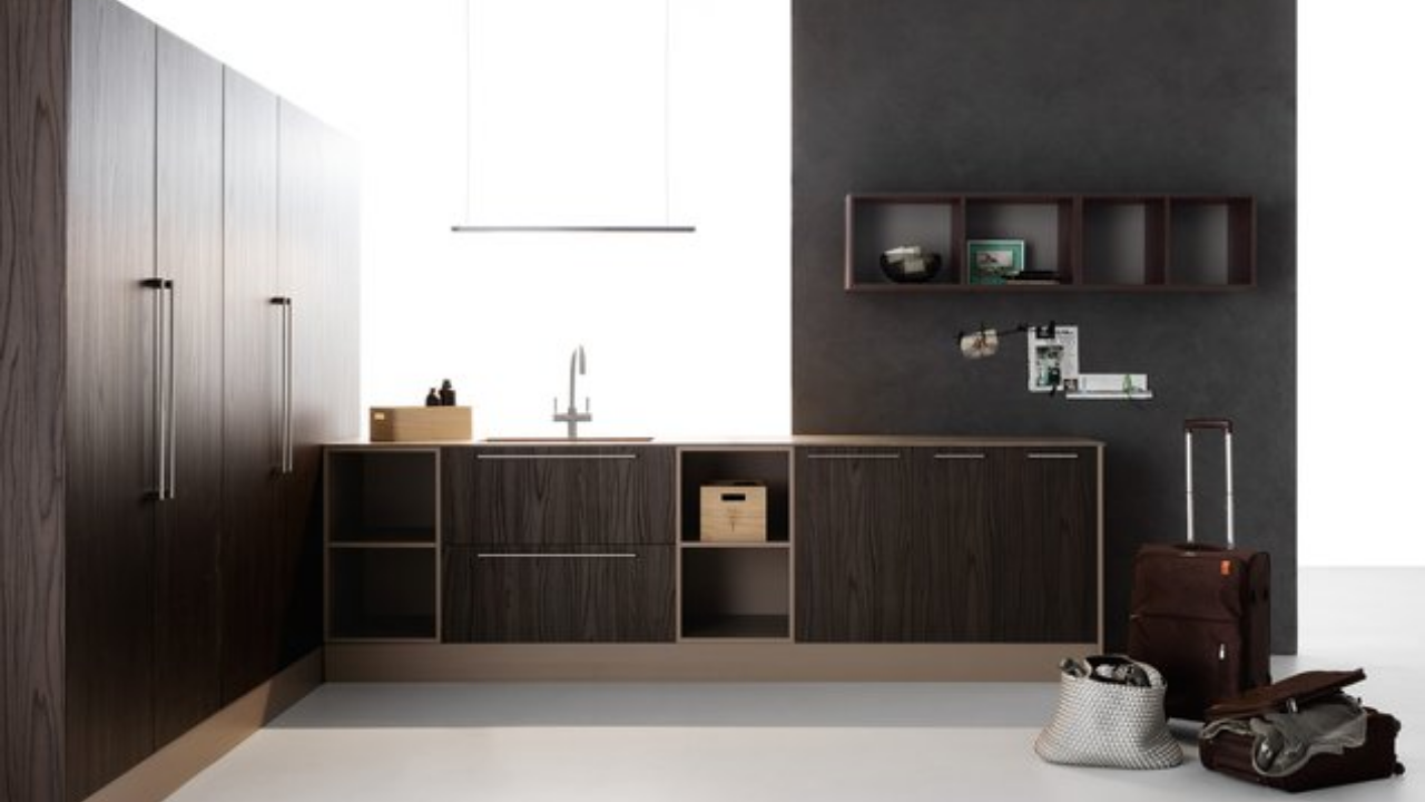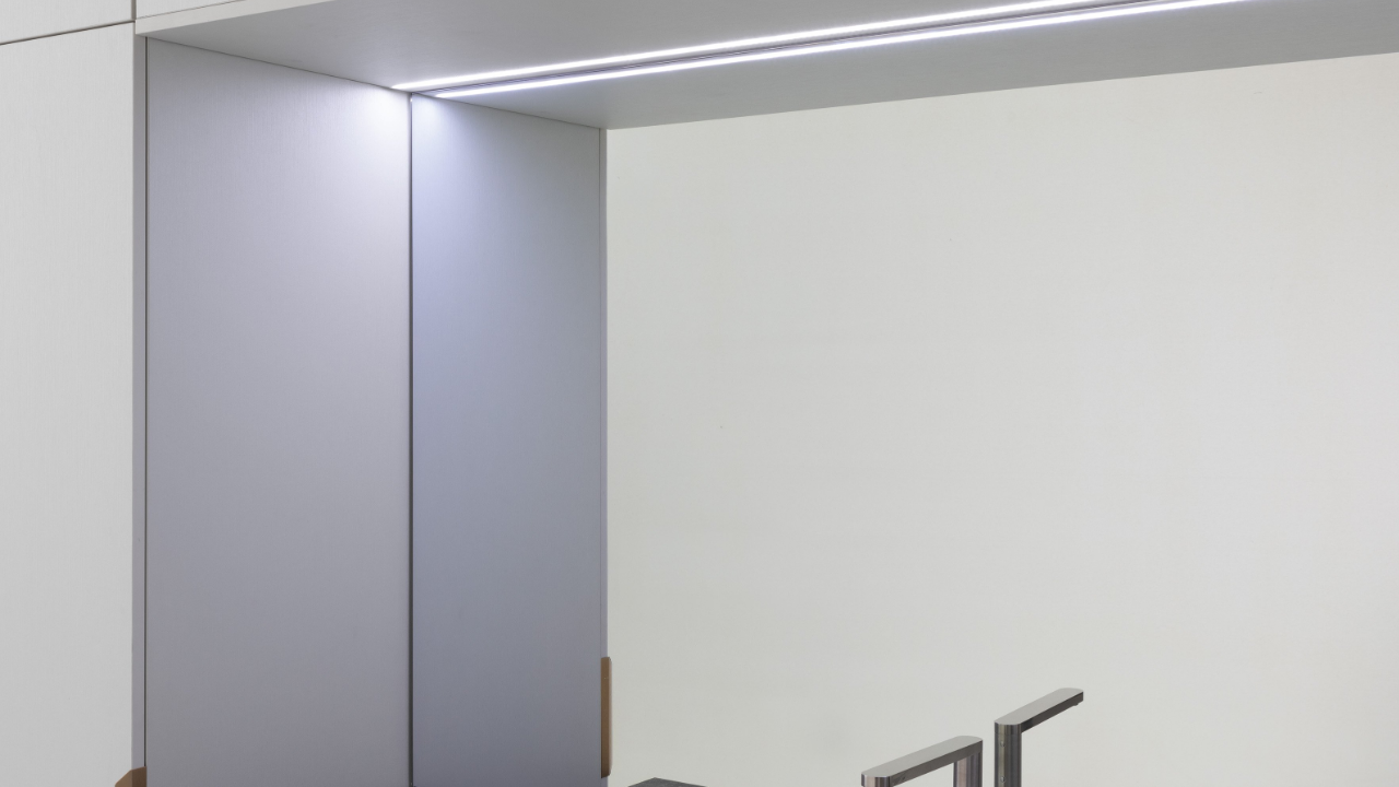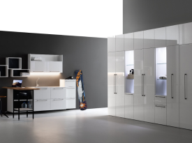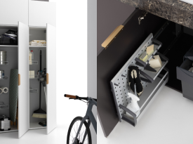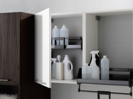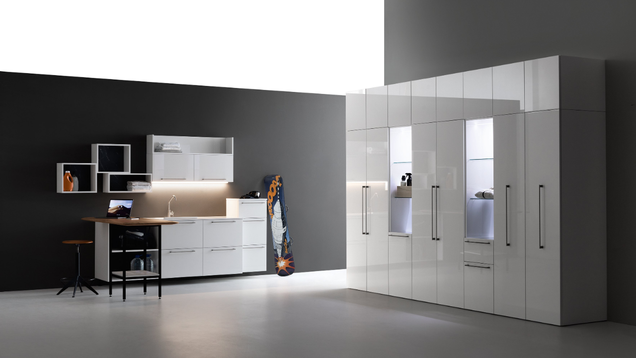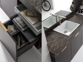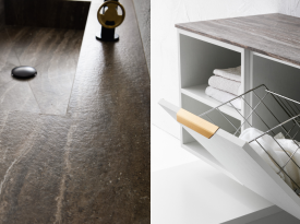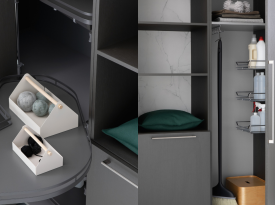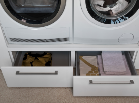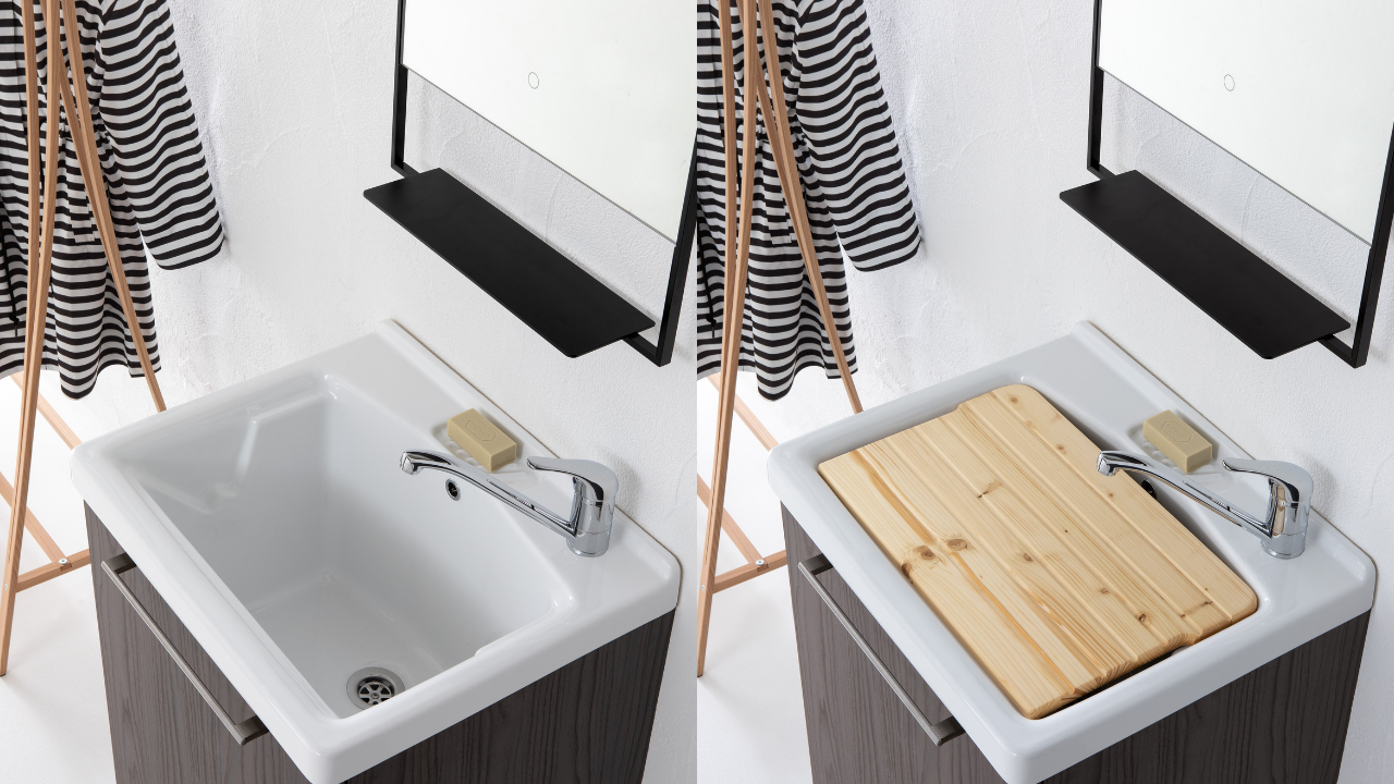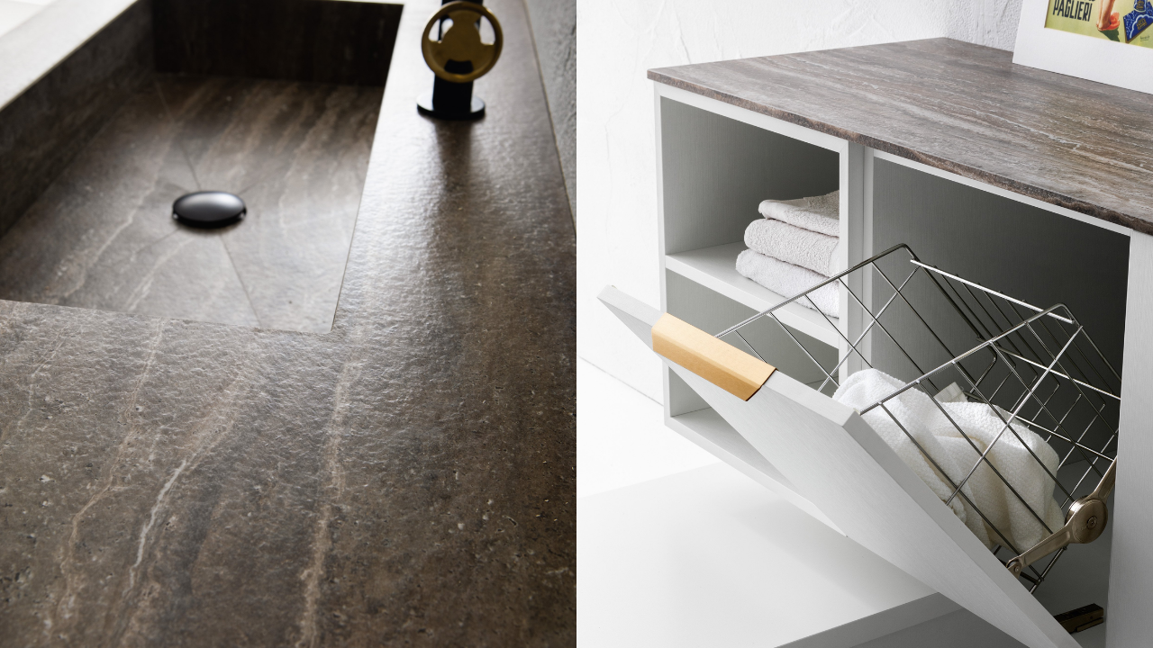 Spazi funzionali e linee essenziali trasformano la lavanderia in un ambiente ordinato e piacevole.