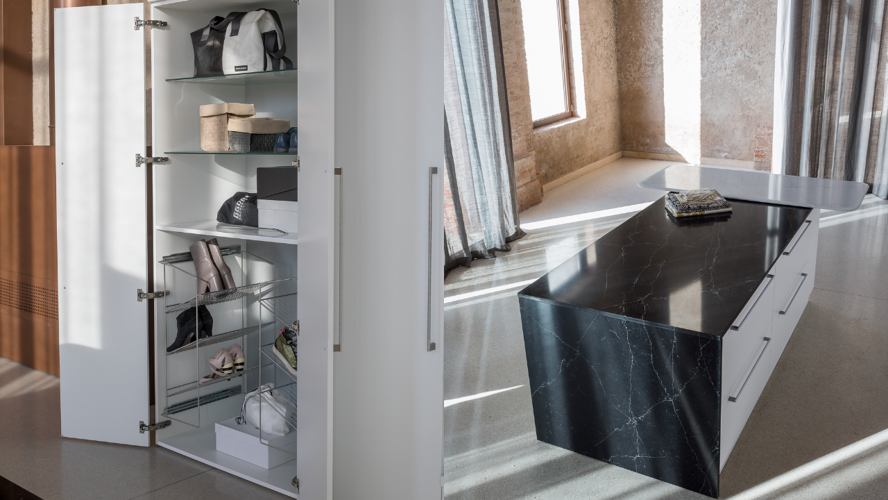 Mobili e soluzioni salvaspazio ottimizzano ogni angolo disponibile.